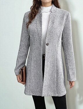 Naisten Bleiseri Pidä lämpimänä Mukava Tasku Napit Muoti Ulkoilma Tavallinen Bile Viikonloppu Yksirivinen Normaali Kauluskäänne Normaali Pitkähihainen Päällysvaatteet Harmaa Syksy Talvi