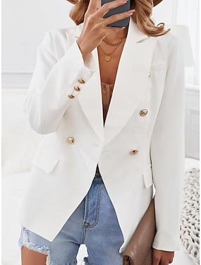 Naisten Bleiseri Mukava Hengittävä Tasku Tyylikäs Juhla Tavallinen Toimisto Katu Kausaliteetti Arki-asut Kaksirivinen Normaali Sänkyjen avaus Normaali Pitkähihainen Päällysvaatteet Valkoinen Khaki