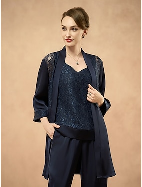 Naisten Bleiseri Mukava Pitsi Tyylikäs Muoti Juhla Muodollinen Häät Juhla Juhlat Avoin etuosa Pitkä Kaulukseton Loose Fit 3/4 hiha Päällysvaatteet Laivaston sininen Kesä Kevät