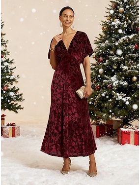 Naisten Maksimekko Kotelomekko Tyylikäs Iltajuhlat Häävieras Cocktailjuhla Normaali Yhtenäinen väri Lyhythihainen V kaula-aukko Rubiini