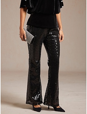 Naisten Bell Bottom Tyylikäs Täyspitkä Keskivyötärö Paljetti Elastinen Juhla Illanviettoon ja erikosilaisuuksien Cocktailjuhla Musta Kesä Kevät Syksy Talvi Normaali