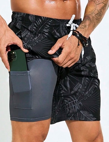 Miesten Palmu lehtiä Trooppiset kasvit Vuoratut shortsit 2 in 1 uimashortsit Uimashortsit Keskivyötärö Havaijilainen Loma Pyhäpäivä Ranta-asut Sivutaskut Compression Linerin kanssa Joustava