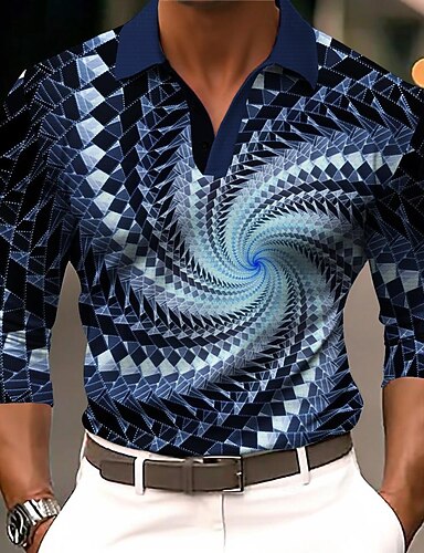Miesten Geometrinen Viiva Golfpaita Pitkähihainen Poolopaidat Kauluspaidat Vapaa-aika Business Casual Katu Urheilu- ja treenivaatteet Ulkoiluvaatteet Pyhäpäivä Napit 3D-tulostus Kevät Syksy Talvi