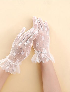 Tyll Kyynärpääpituus Käsine söpö tyyli / Tyylikäs Kanssa Aaltopiste Häät / Juhlakäsine