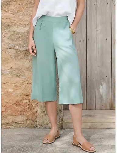 Naisten Housut Kesähousut Rantahousut Loma Muoti Rento arki Nilkkapituinen Korka vyötärö Yhtenäinen väri Tavallinen Joustava vyötärö Leveä reisi Mukavuus Pehmeä Hengittävä Joustamaton Katuvaatteet