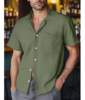Miesten pellava paita Band kauluspaita Rento paita Tavallinen Loma Havaijilainen Musta Valkoinen Keltainen Punastuvan vaaleanpunainen Lyhythihainen Henley Kevät kesä Vaatetus Edessä tasku
