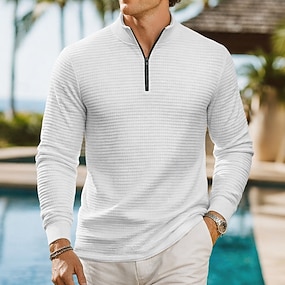 Miesten Vohveli poolopaidat Zip Polo Kausaliteetti Pyhäpäivä Kauluskäänne Neljänneksen postinumero Lyhythihainen Vanhan rahan tyyli Tavallinen Neljänneksen postinumero Kesä Normaali Valkoinen