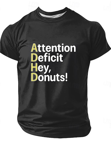 miesten adhd-t-paita, tarkkaavaisuushäiriö, hei donuts, hauska, sarkastinen, huumori, meme, t-paita, graafinen, normaali istuvuus, lyhythihainen, rento, lahja, merkkivaatteet, s, m, l, xl, xxl, xxxl