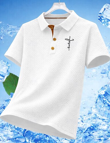 Miesten Vohveli poolopaidat Textured Kausaliteetti Työ Kauluskäänne Lyhythihainen Perus Moderni Risti Napit Jäähdytys Kesä Kevät Sininen Musta Valkoinen Laivaston sininen Tumman harmaa Vaalean sininen