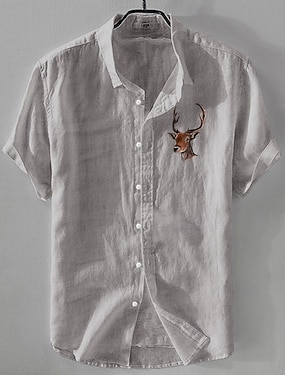 Miesten Pellava paita Rento paita Puuvillainen pellava paita Button Up paita Eläinkuvioinen Loma Arki-asut Musta Valkoinen Vaalean vihreä Vaaleanpunainen Lyhythihainen Kauluskäänne Kaikki vuodenajat