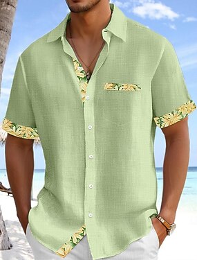 Miesten Kookospuu Pellava paita Kesä paita Button Up paita Lyhythihainen Muoti rento Loma Pyhäpäivä Ranta-asut Kesä Kevät Sänkyjen avaus kauluspaidat Edessä yksi tasku Valkoinen Apila