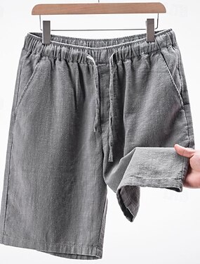 Miesten Shortsit Puuvillaiset pellavashortsit Kesähousut Rantahousut Tasku Kurenauha Joustava vyötärö Tavallinen Mukavuus Hengittävä Lyhyt Loma Pyhäpäivä Hiekkaranta Havaijilainen Boheemi Musta