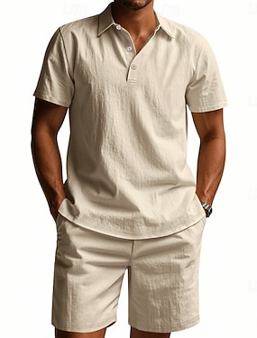 Miesten Pellava paita 2 osainen Paidasetti Ja Shortsit Liinavaatteet Rantahousut Aseta Tavallinen Päivittäin ulko- Loma Sänkyjen avaus Lyhythihainen Kesä Muoti Vapaa-aika Mukava Vaatetus