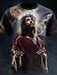 miesten Jeesus Kristus orjantappurakruunu rukoileva punainen kaapu uskonnollinen kristillinen hengellinen usko taide t-paita kauttaaltaan printti normaali istuvuus kirkko päivittäin rento