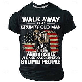 miesten kävely pois olen ärtyisä vanha mies vihan ongelmat inho tyhmät ihmiset viikatemies kallo isänmaallinen amerikanlippu hauska sarkastinen t-paita graafinen pyöreä kaula-aukkoinen lyhythihainen