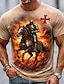 miesten temppeliritari panssaroitu ratsain tulen punainen risti keskiaikainen kristitty soturi eeppinen vintage lyhythihainen t-paita graafinen rento istuvuus katutyyli arkikäyttöön