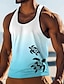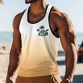 miesten merikilpikonna palmu aaltokuvio graafinen trooppinen havaijilainen merellinen ombre kaltevuus toppi liivi hihaton paita U-kaula-aukkoinen kesä ranta loma surffaus vapaa-ajan vaatteet vaatteet