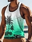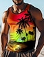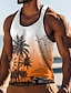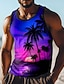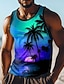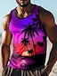Miesten toppi, aluspaita, hihaton paita, U-kaula-aukkoinen, kesäinen, galaksisumu, koko printti, trooppinen, palmuja, ranta, auringonlasku, kuu, graafinen, muoti, klassinen, mukava, katu, rento,