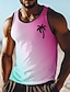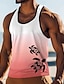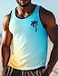 Miesten Ombre Kookospalmu T-paita Hihaton T-paita 3D-tulostus V kaula-aukko Paita Trooppinen Ulkoilma Loma Havaijilainen Sininen Järvensininen Rubiini Kesä Kevät Vaatetus S M L XL XXL XXXL