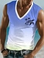 Miesten palmukuvioinen minimalistinen trooppinen Havaijin rantakuvioinen ombre-kuvioinen liukuvärjäys sininen valkoinen keltainen toppi hihaton paita U-kaula-aukkoinen kesä rantaloma surffaus loma