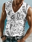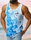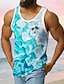Miesten Kuvitettu Eläin Hihaton Liivin toppi Hihaton T-paita miehille Hihaton T-paita 3D-tulostus V kaula-aukko Paita Suunnittelija Vapaa-aika Lihas Urheilu Juoksu Jumppa Musta Sininen Tumman sininen