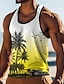 miesten kaksoispalmu siluetti graafinen trooppinen havaijilainen minimalistinen keltainen toppi liivi hihaton paita U-kaula-aukkoinen kesä ranta loma loma kuntosali urheilu vapaa-ajan vaatteet