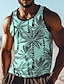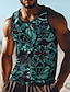 Miesten hihaton toppi, aluspaita, hihaton paita, U-aukkoinen kesäinen mintunvihreä, sinivihreä, musta, palmuja, graafinen kuvio, trooppinen rantaloman muoti, katu, rento urheilu-t-paita miehille