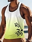 miesten palmukuvioinen graafinen valkoinen mintunvihreä ombre kaltevuus trooppinen kesä ranta v-aukkoinen toppi liivi hihaton paita loma katu rento urheilu t-paita vaatteet s m l xl xxl xxxl