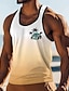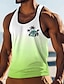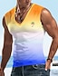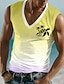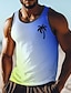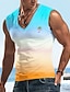 Miesten hihaton paita, liivi, hihaton paita, U-aukkoinen, kesä, syaani, vaaleansininen, keltainen, liukuvärjäys, ombre, minimalistinen, musta, palmu, trooppinen, rantaloma, muoti, katu, rento,