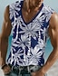 Miesten Kasvit Trooppinen Trooppiset kukat T-paita Hihaton T-paita 3D-tulostus V kaula-aukko Paita Trooppinen Ulkoilma Loma Havaijilainen Sininen Valkoinen Purppura Kesä Kevät Vaatetus S M L XL XXL