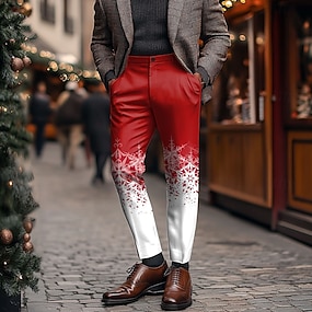 Christmas Miesten Lumihiutale Puvunhousut Keskivyötärö Muoti Vapaa-aika ulko- Juhla Arkikäyttö Vetoketju Tasku Kesä Kevät Syksy 3D-tulostus Punainen Valkoinen