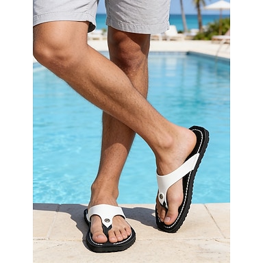Miesten valkoiset keinonahkasandaalit tyylikkäillä hihnoilla – täydelliset rentoutumiseen rannalla tai uima-altaalla