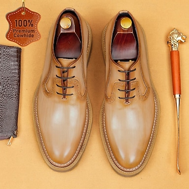 Miesten Juhlakengät Kävely Klassinen Nahka Italialainen täysjyväinen lehmännahka Liukumaton Nauhat Musta Ruskea