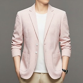 Miesten Bleiseri liiketoiminta Cocktailjuhla Hääjuhla Muoti Vapaa-aika Kevät Syksy Villasekoite Raita Tasku Napit Mukava Yksirivinen Bleiseri Punastuvan vaaleanpunainen Purppura Oranssi Vaalean