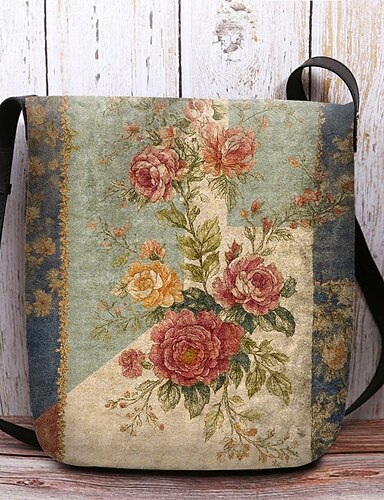 naisten boheemi kukkakirjailtu crossbody-laukku, taiteellinen käsintehty olkalaukku värikkäällä kukkakuviolla, täydellinen arki- ja festivaalivaatteisiin