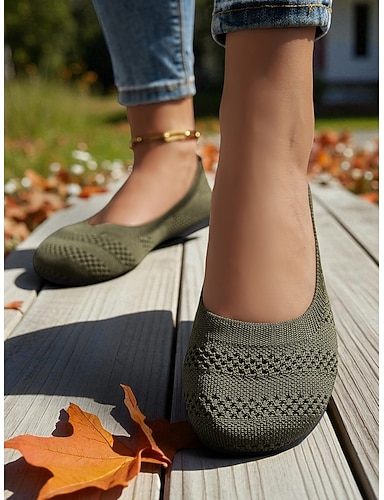 naisten leveäkärkiset keltaiset flyknit-balettitossut – hengittävät vapaa-ajan kengät työhön, matkoille ja kevätretkille