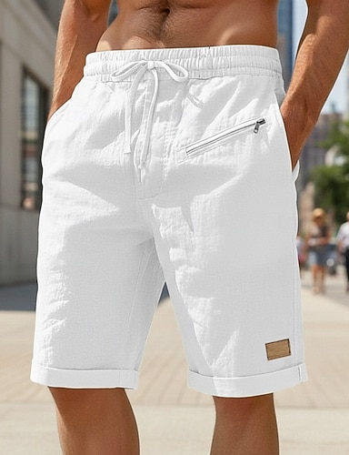 Miesten Liinavaatteet Kesähousut Rantahousut Kurenauha Joustava vyötärö Vetoketjullinen tasku Tavallinen Solid Color Mukavuus Pehmeä Polven pituus Päivittäin Hiekkaranta Muoti Tyylikästä ja modernia