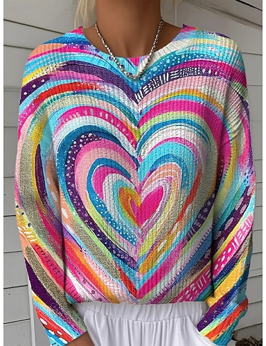 Naisten Neulos Pusero Päivittäin Vapaa-aika Kuvitettu Väri kaltevuus Joustin Tiukka pyöreä kaula-aukko Kudottu Painettu Pitkähihainen Tavalliset topit Neuloa ulko- Viikonloppu Sateenkaari Kevät Syksy
