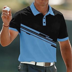 Miesten Geometrinen Golf Urheilu poolopaidat Lyhythihainen Poolopaidat Kauluspaidat Vapaa-aika Urheilu- ja treenivaatteet Arki-asut 3D-tulostus Napit Kesä Kevät Sininen Apila Musta