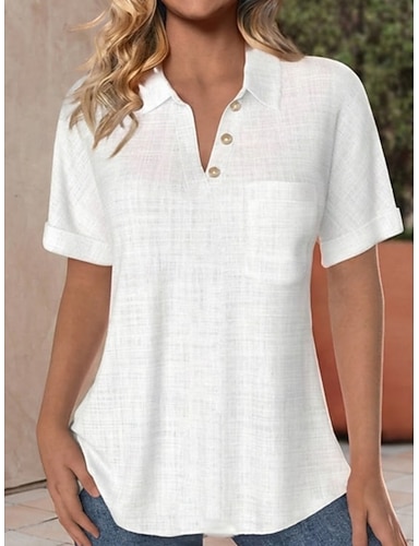 Naisten Pusero Keinopellavapaita Napit Yhtenäinen väri Vintage Tyylikäs Vapaa-aika Puolihiha Paitapuserokaula-aukko Tavalliset topit Päivittäin Sininen Musta Valkoinen Punastuvan vaaleanpunainen Apila