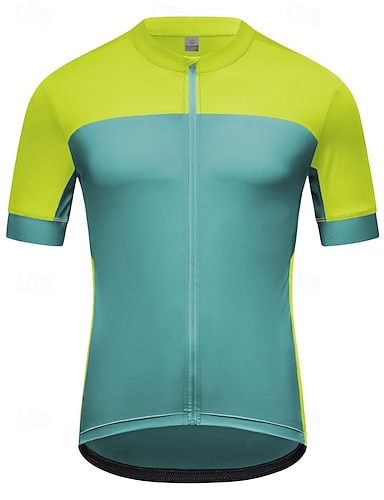 Miesten Pyöräily jersey Väripalikka Patchwork kuvio Lyhythihainen Pyörä Villapusero Topit 3 takataskulla UV-vastustuskykyinen Nopea kuivuminen Takatasku Hikeä siirtävä Urheilu Keltainen Apila Vaalean
