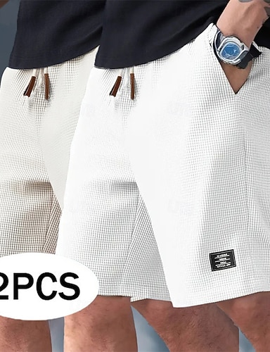 Miesten Vohveli shortsit Shortsit Rennot shortsit Tasku Joustava vyötärö Textured Tavallinen Mukavuus Hengittävä Polven pituus Kausaliteetti ulko- Hiekkaranta Loma Muoti Keltainen / Musta Musta