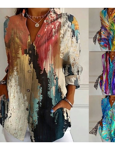 Naisten Paita Napit Painettu Kuvitettu Raidoitettu Tyylikäs Vintage Trooppinen Pitkähihainen Paitapuserokaula-aukko Tavalliset topit Päivittäin Työ Musta Punastuvan vaaleanpunainen Purppura Harmaa