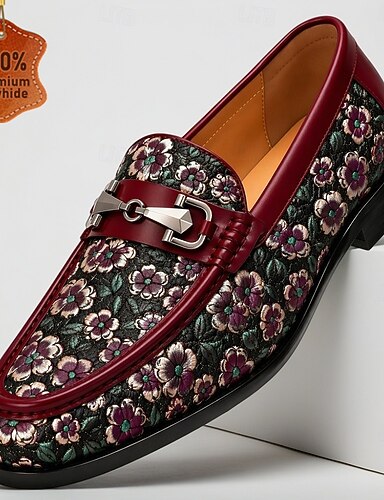 Miesten punaiset kukkakuvioiset jacquard-loaferit, metallinhohtoiset slip-on-kengät, tyylikkäät jalkineet häävieraille, banketteihin, juhliin, lavatapahtumiin ja iltapukuihin
