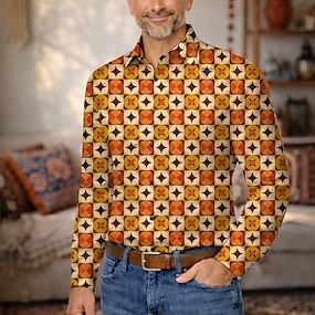 Retro / vintage 1970 luku Pusero Havaijilaispaita Pitkähihainen Hippi Geometrinen Etninen Naamiaispuku Miesten Naamiaiset musiikkifestivaali Juhla Arki-asut Aikuisten Pusero