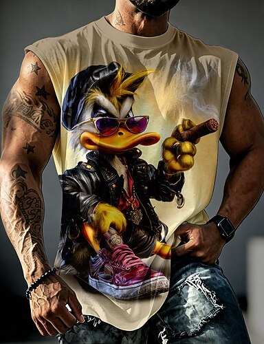 Miesten Eläin Ankka Aluspaita Hihaton T-paita 3D-tulostus Tiukka pyöreä kaula-aukko Paita Hauska Päivittäin Katu Keltainen Khaki Harmaa Kevät kesä Vaatetus S M L XL XXL 3XL