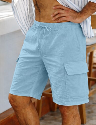 Miesten Reisitaskuhousut Pellavahousut Kesähousut Kurenauha Joustava vyötärö Monitasku Tavallinen Mukavuus Hengittävä Vasikka-Length Kausaliteetti Päivittäin ulko- Loma Muoti Sininen Musta Joustamaton