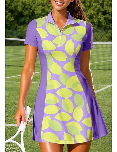 Naisten Kukat Tennismekko Urheilumekko Tennispoolomekko Lyhythihainen Neljänneksen postinumero Elastinen Hikeä siirtävä Hengittävä Lentopallo Tennis Golf Sänkyjen avaus Hameet Purppura Tennisvaatteet