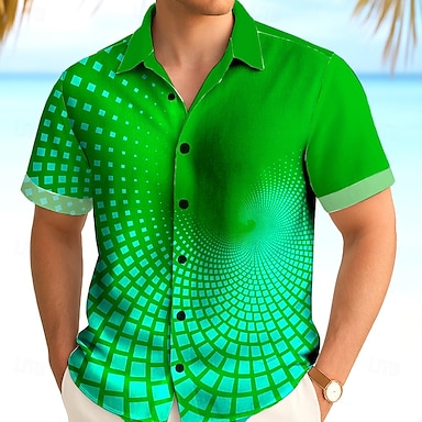 Miesten Geometrinen Paita Guayabera paita Button Up paita Lyhythihainen Muoti rento Loma Arkikäyttö Ranta-asut Kesä Kevät Sänkyjen avaus 3D-tulostus kauluspaidat Valkoinen Sininen Apila