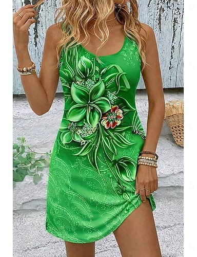 Naisten Rantamekko Rantavaatteet Mini mekko Painettu Trooppinen Muoti Kukka Spagettiolkaimet Hihaton Loose Fit ulko- Päivittäin Musta Keltainen 2023 Kesä Kevät S M L XL